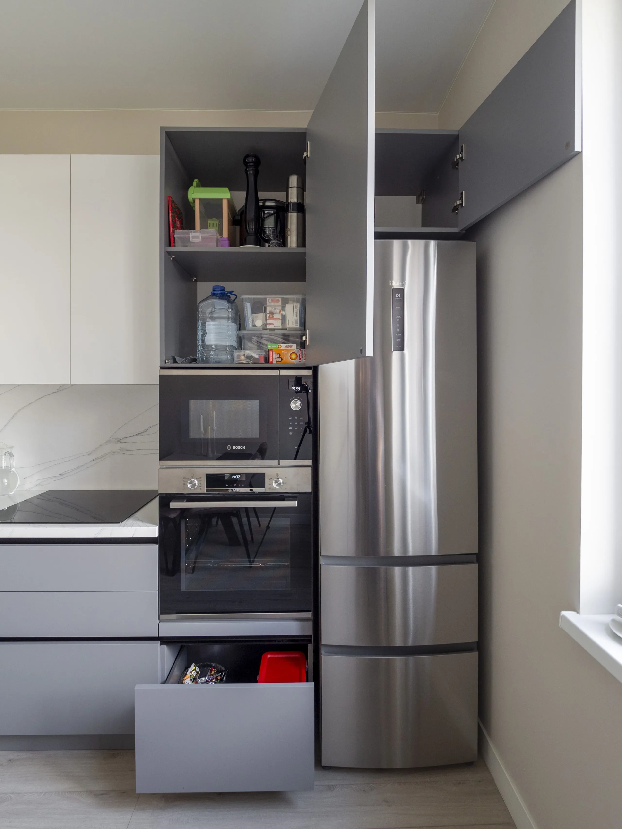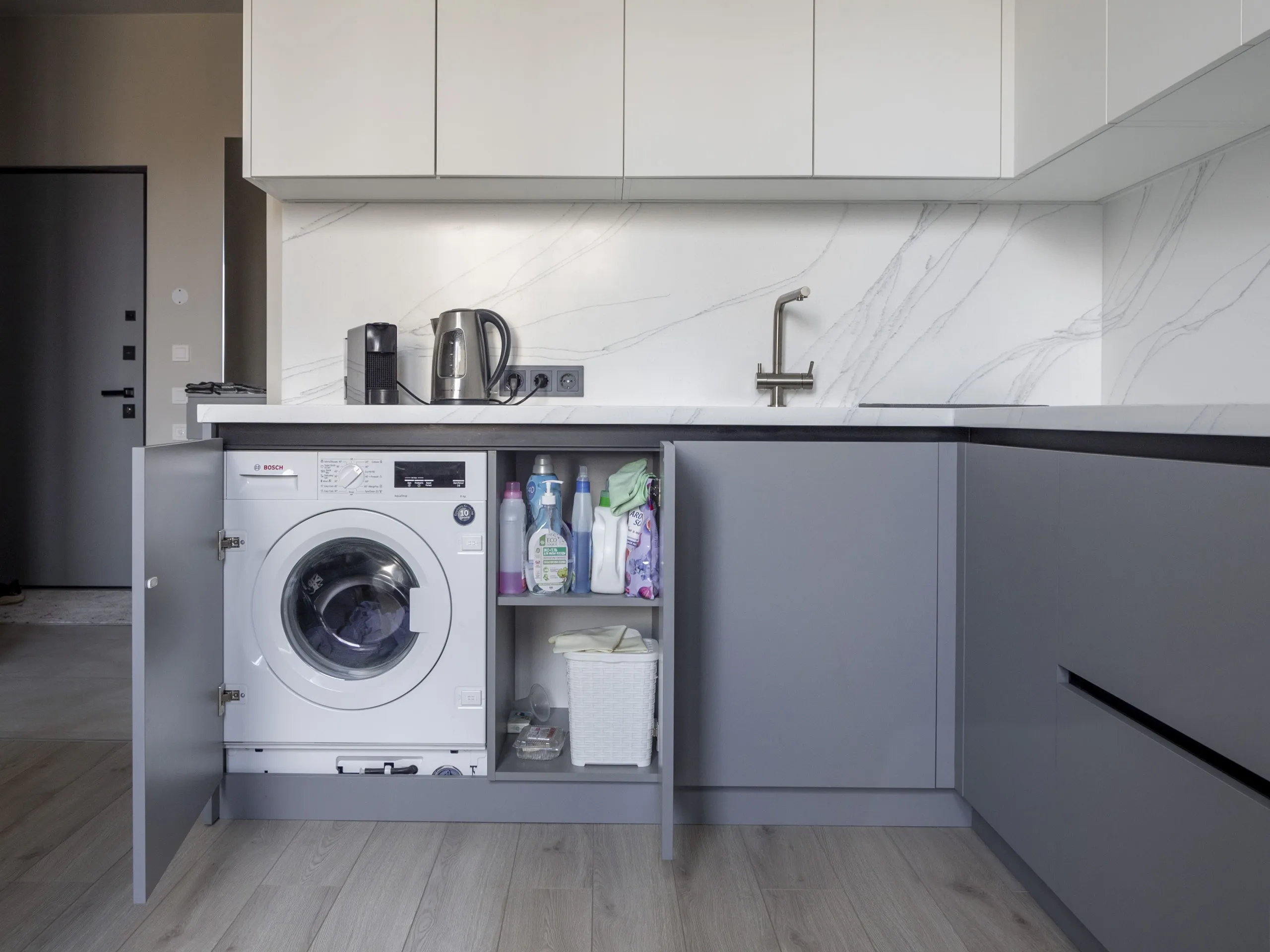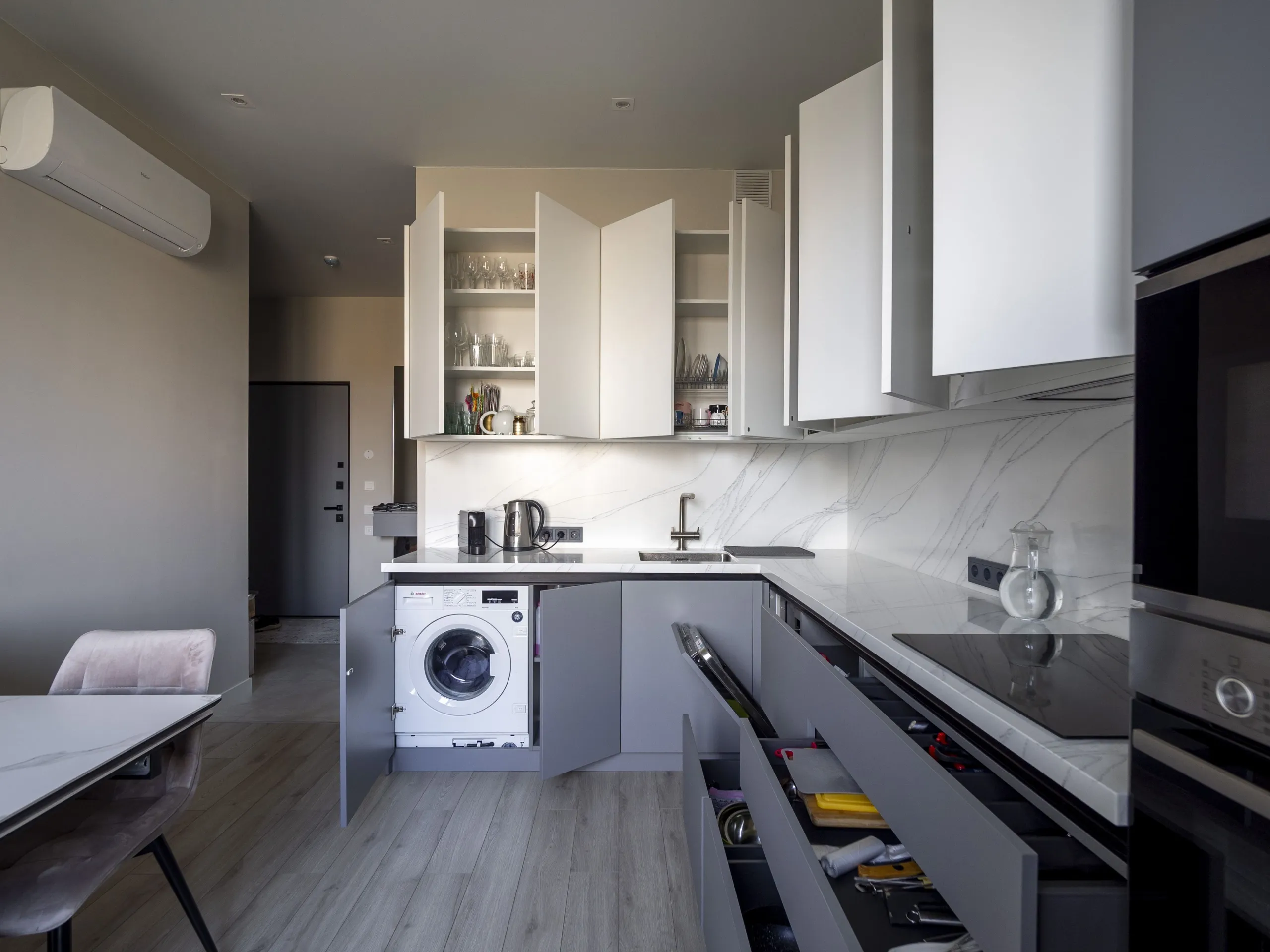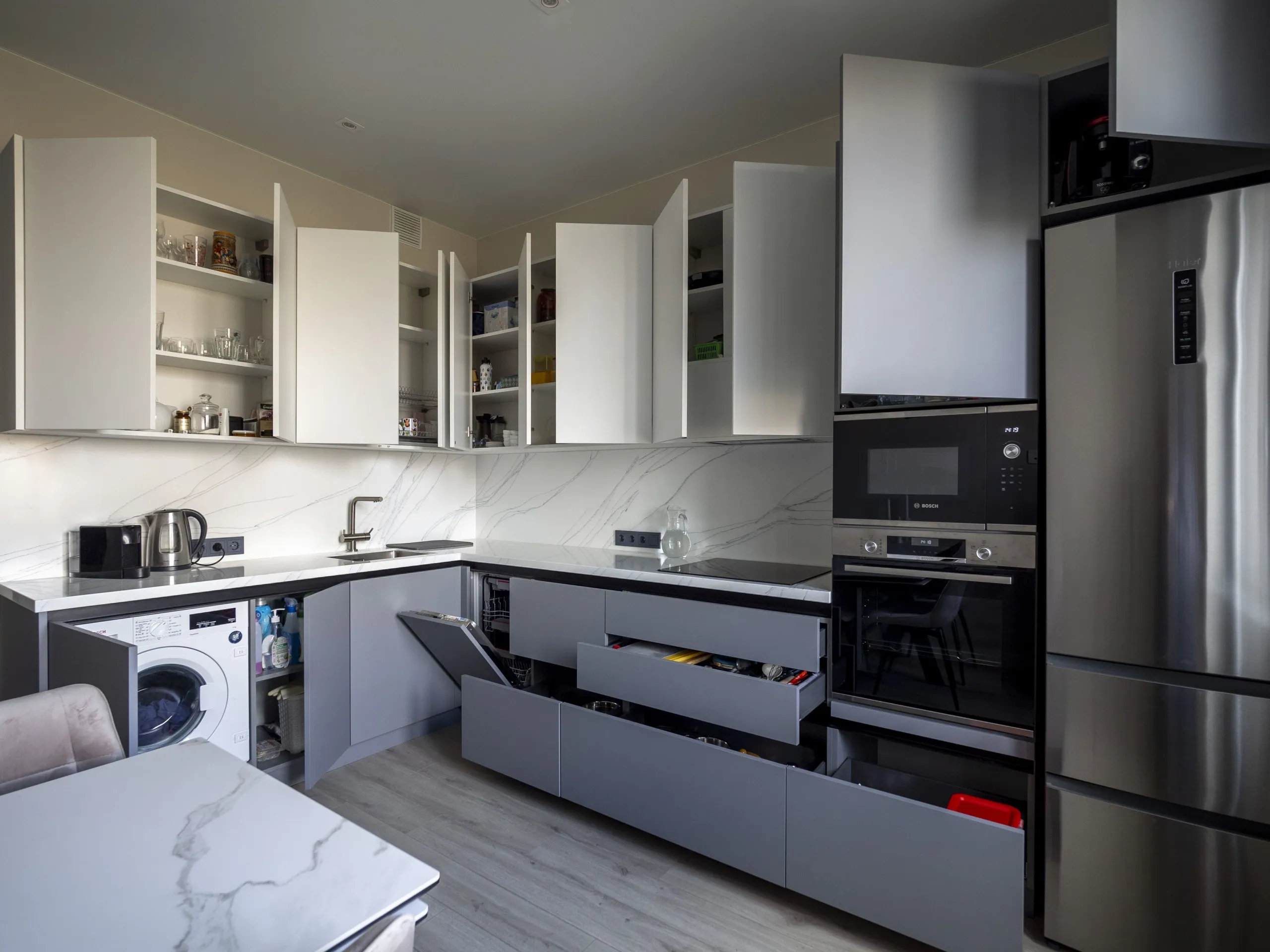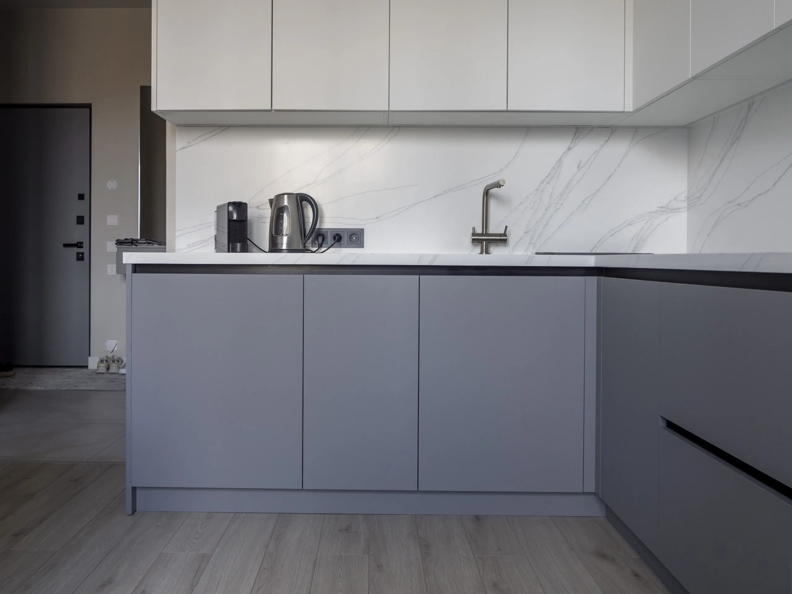 Столешница и стеновая панель: 40 мм акриловый камень GRANDEX C-801 Arezzo