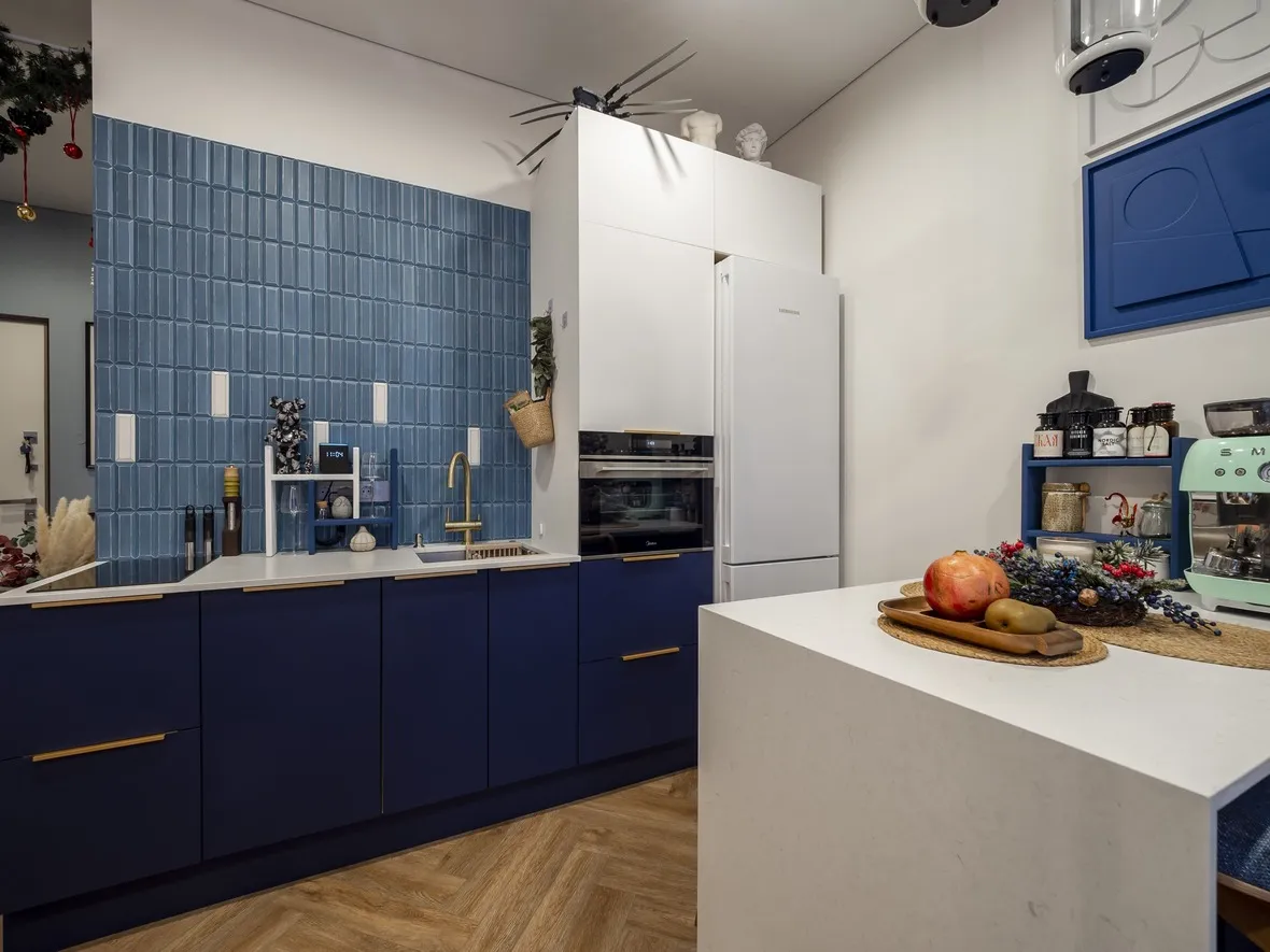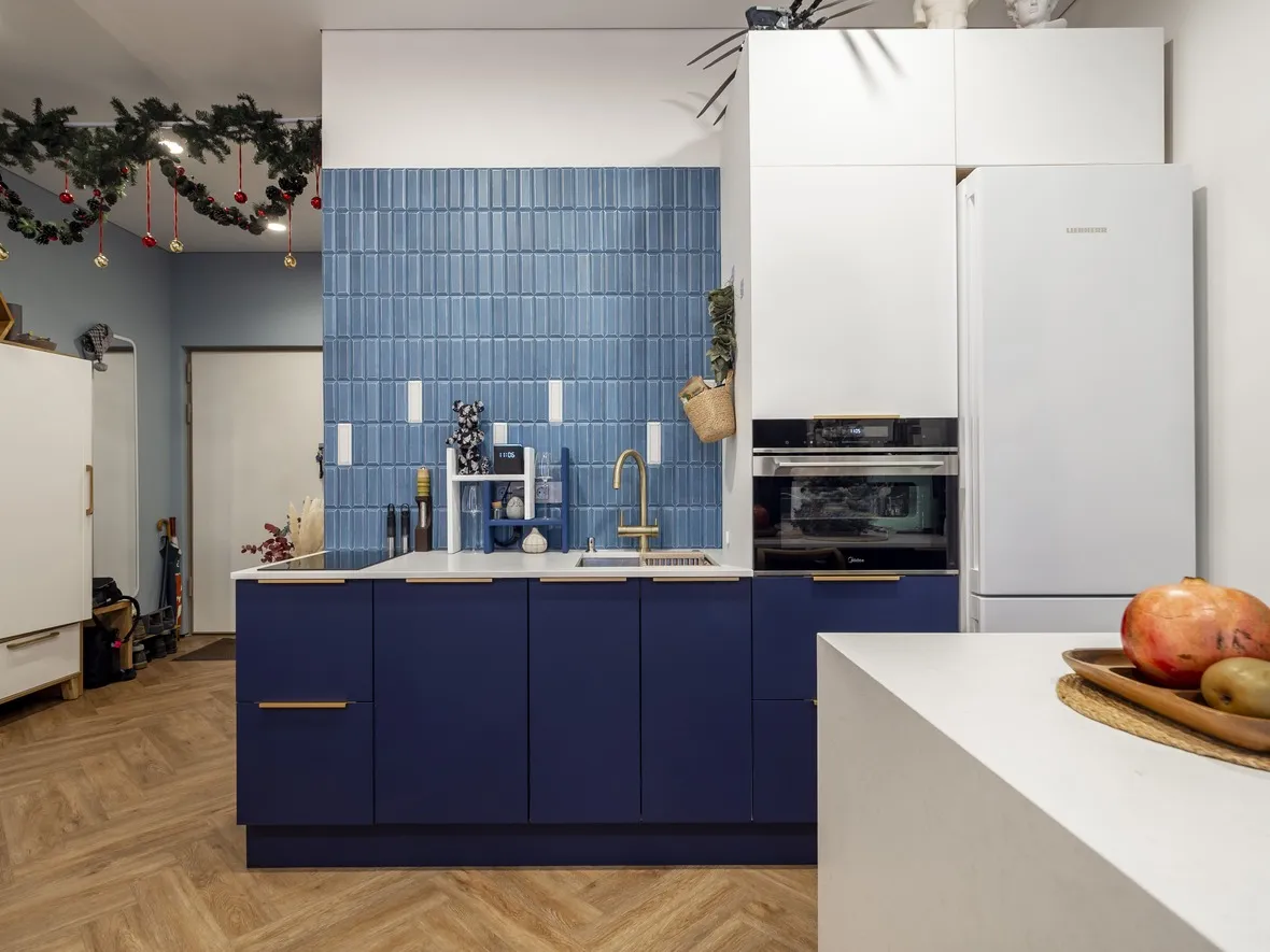 Фасад: Акрил-8 в цвете Белый NTM, Акрил-8 в цвете Синий NTM