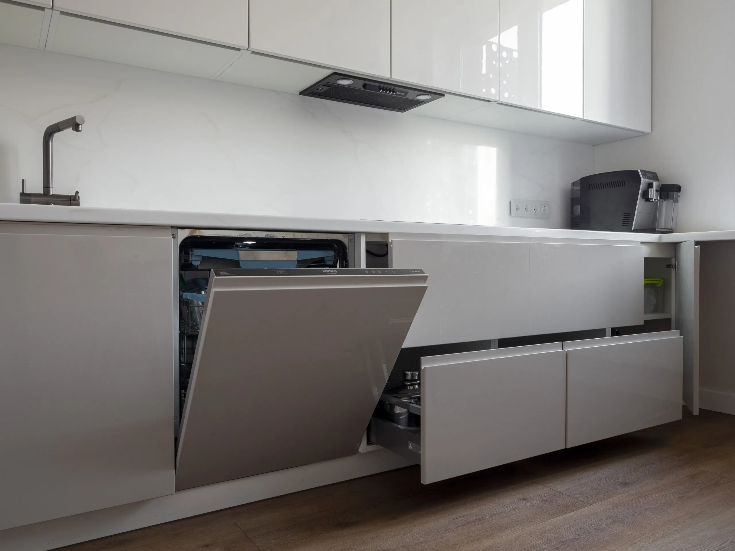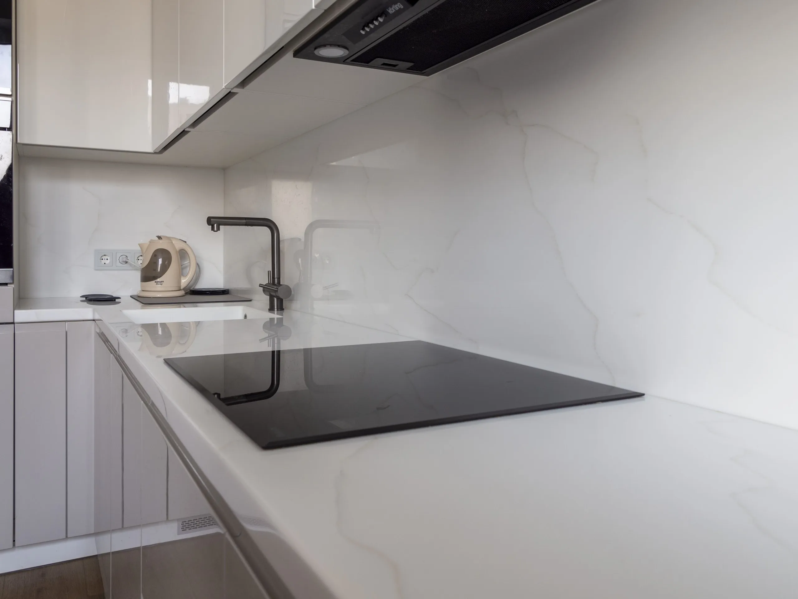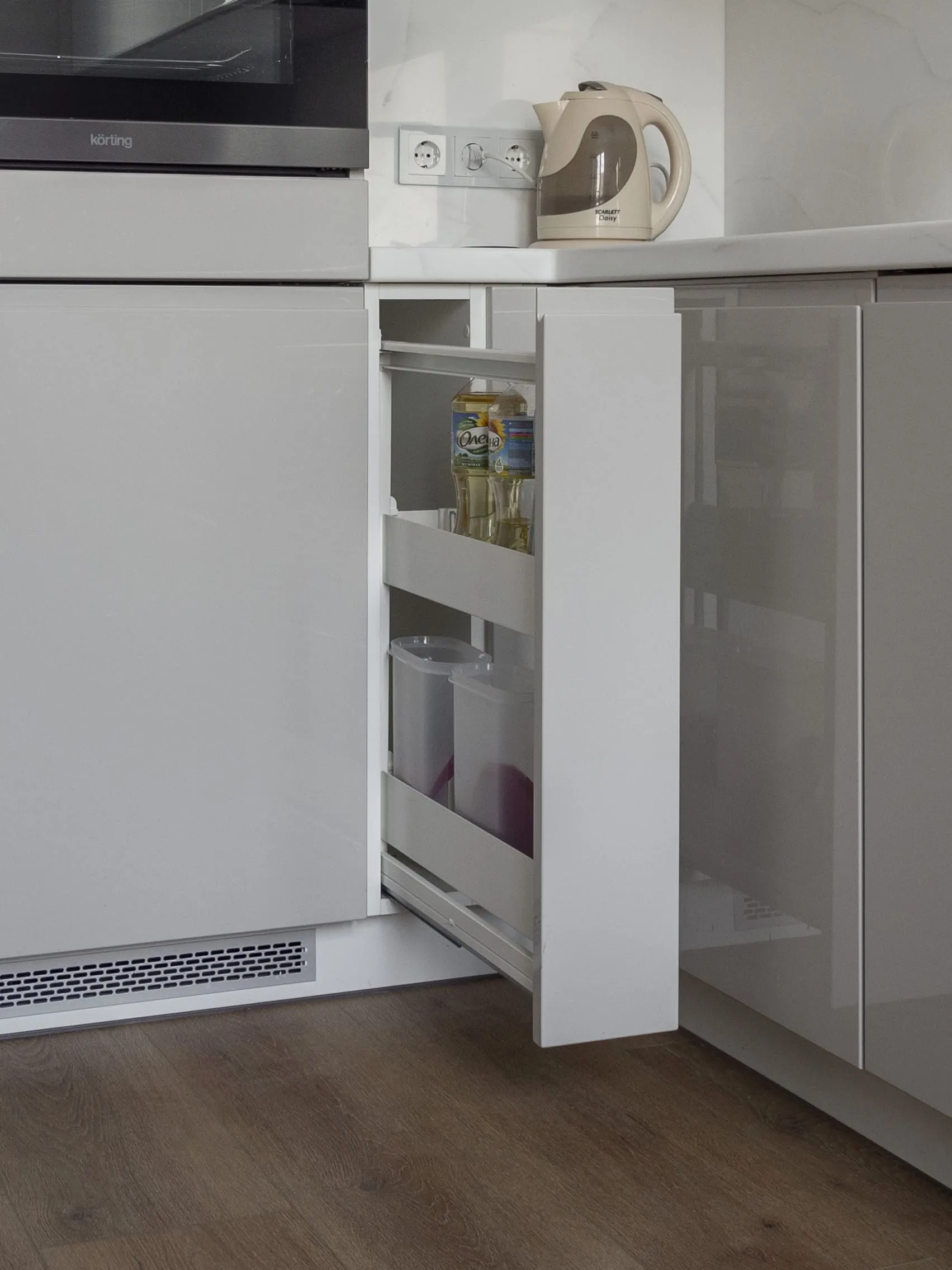 Техника: холодильник, СВЧ, электрический духовой шкаф, ПММ, морозильная камера, индукционная варочная панель, стиральная машина - KORTING, смеситель - EMAR
