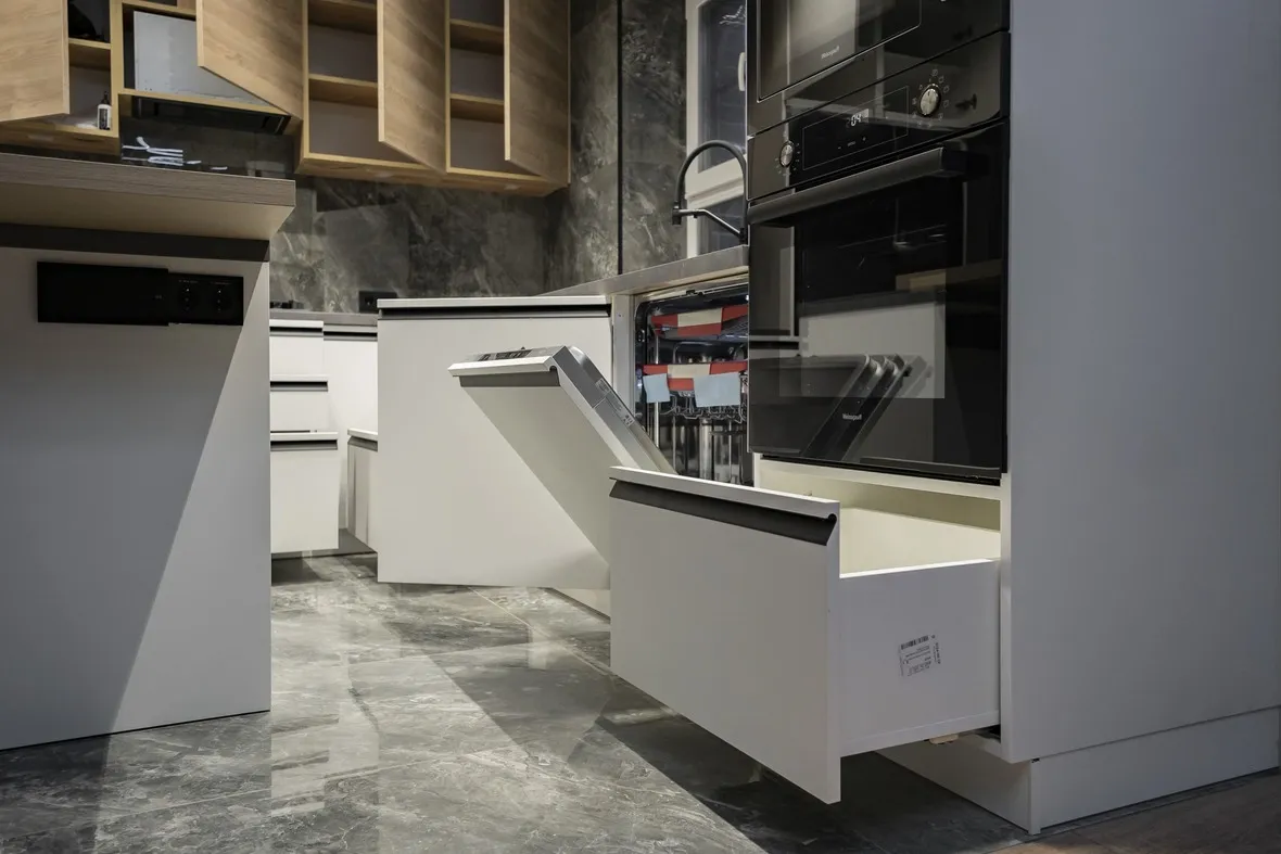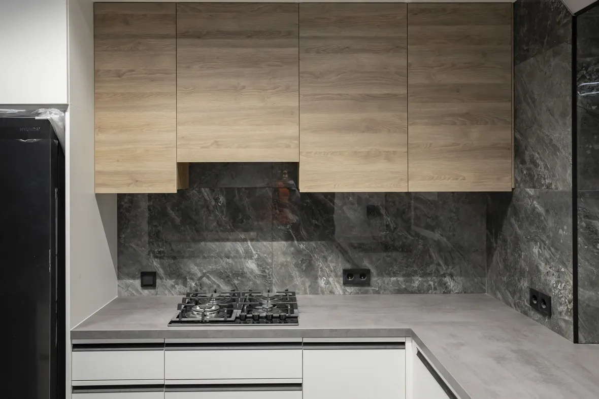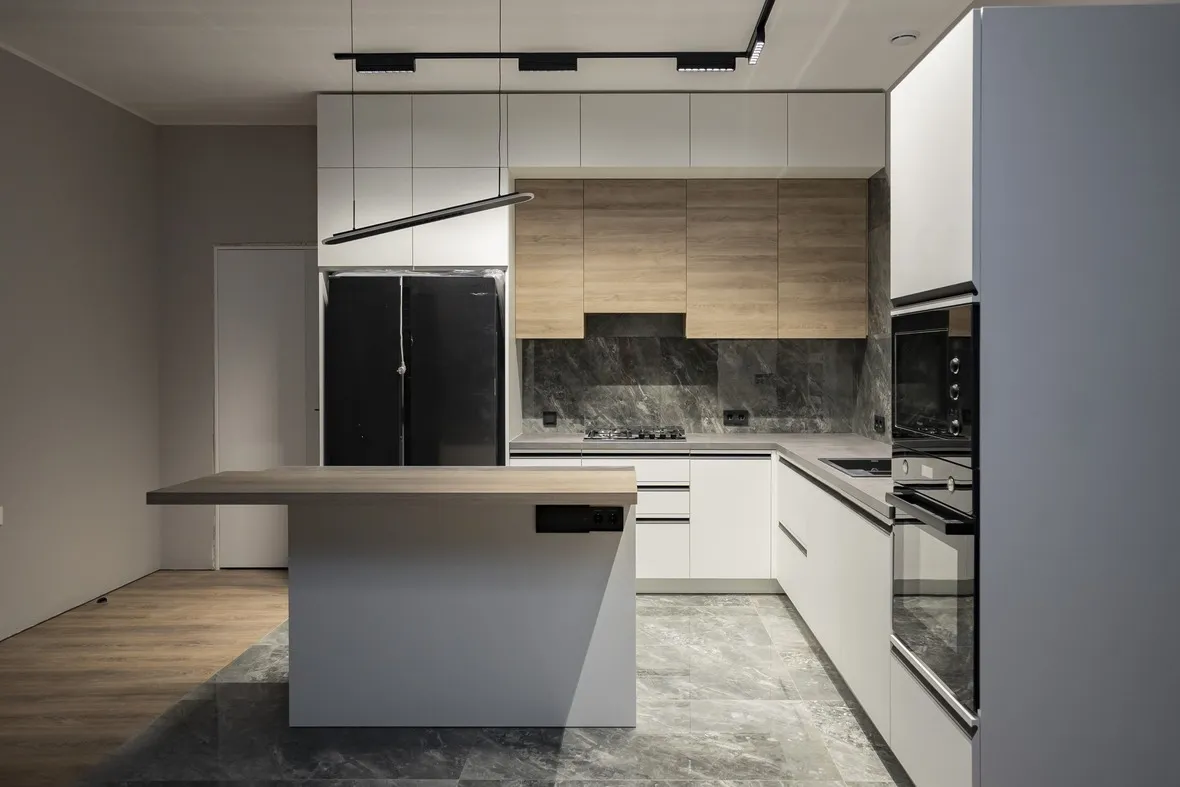 Фасад: Тимбер в цвете Сабиа; Акрил-5 в цвете Белый мат