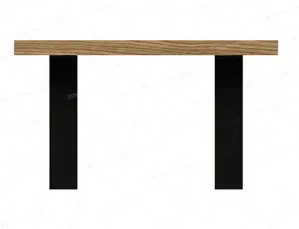 Столешница опирается на 2 опорные конструкции в виде замкнутых трапеций. Опоры изготовлены из черных металлических профилей и покрыты экологически безопасной краской. Она защищает опорные элементы от повреждений и коррозии.