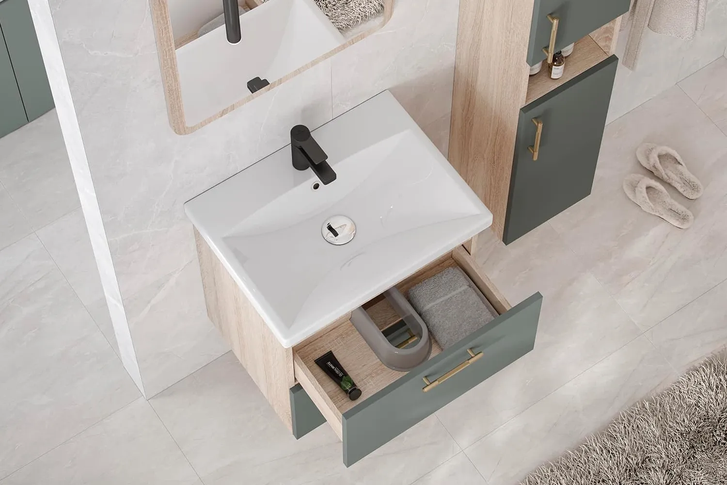 Смеситель, донный клапан, сифон и прочие аксессуары в комплект не входят.